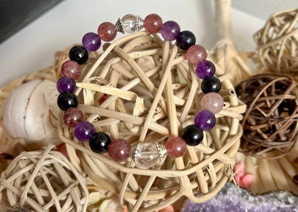 Quartz Fraise • Tourmaline Noire • Améthyste