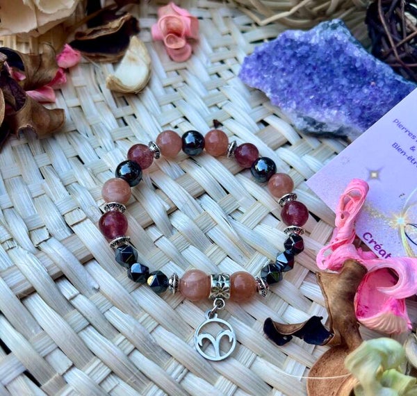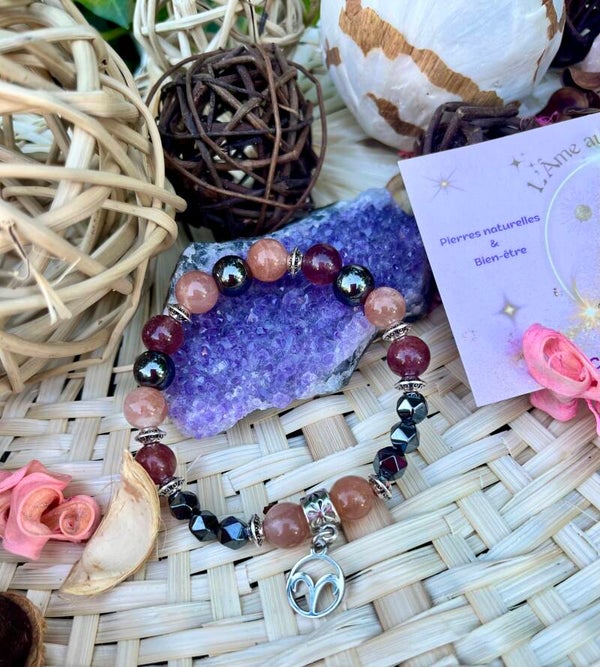 ♈ Orné d’un charm représentant le signe du Bélier, ce bracelet est composé de trois pierres naturelles soigneusement sélectionnées pour équilibrer la force, la spontanéité et la sensibilité de ce signe puissant.