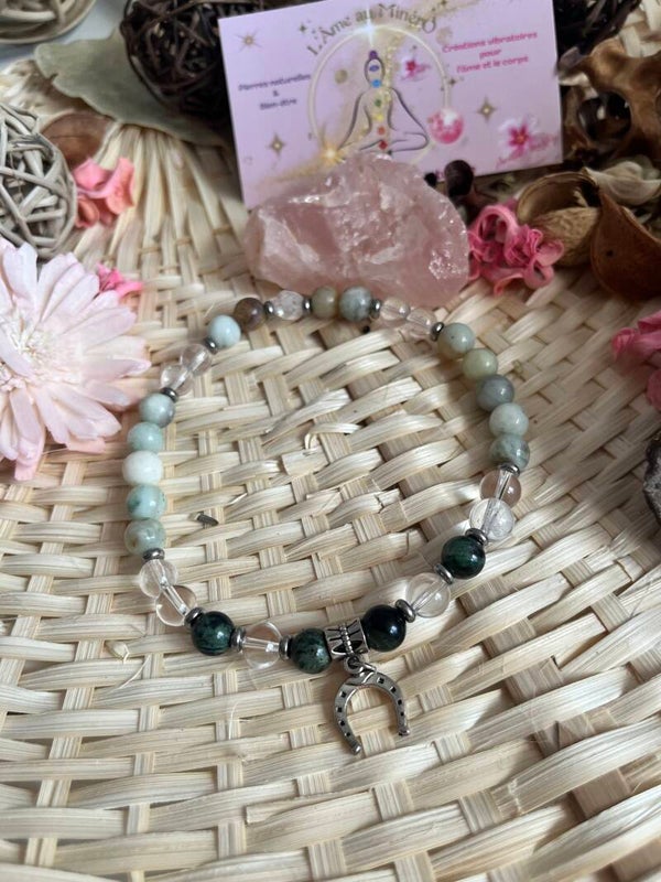 Jaspe Kambaba – Cristal de Roche – Amazonite – Charm Fer à Cheval