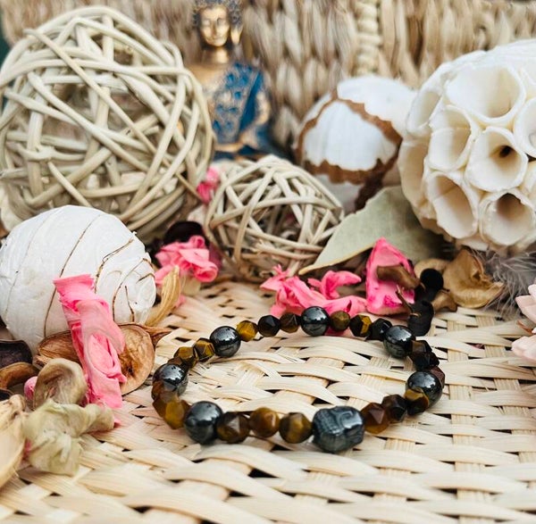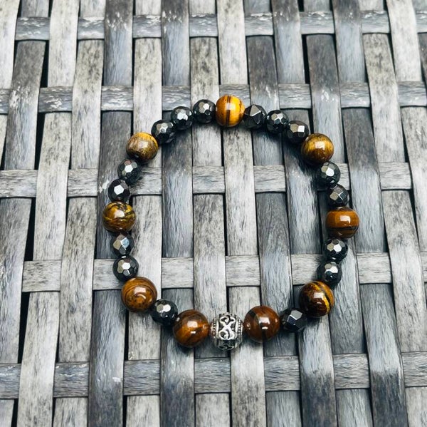 Hématite – Œil de Tigre – Perle Maharo – Charm Bouddha