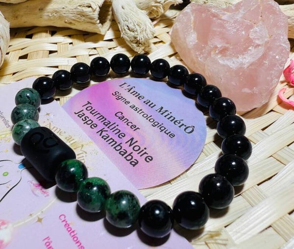 ♋ Le bracelet Astro Cancer en Tourmaline Noire & Jaspe Kambaba offre protection, sérénité et équilibre, pour accompagner ce signe d’Eau dans son énergie émotionnelle et sa stabilité intérieure.